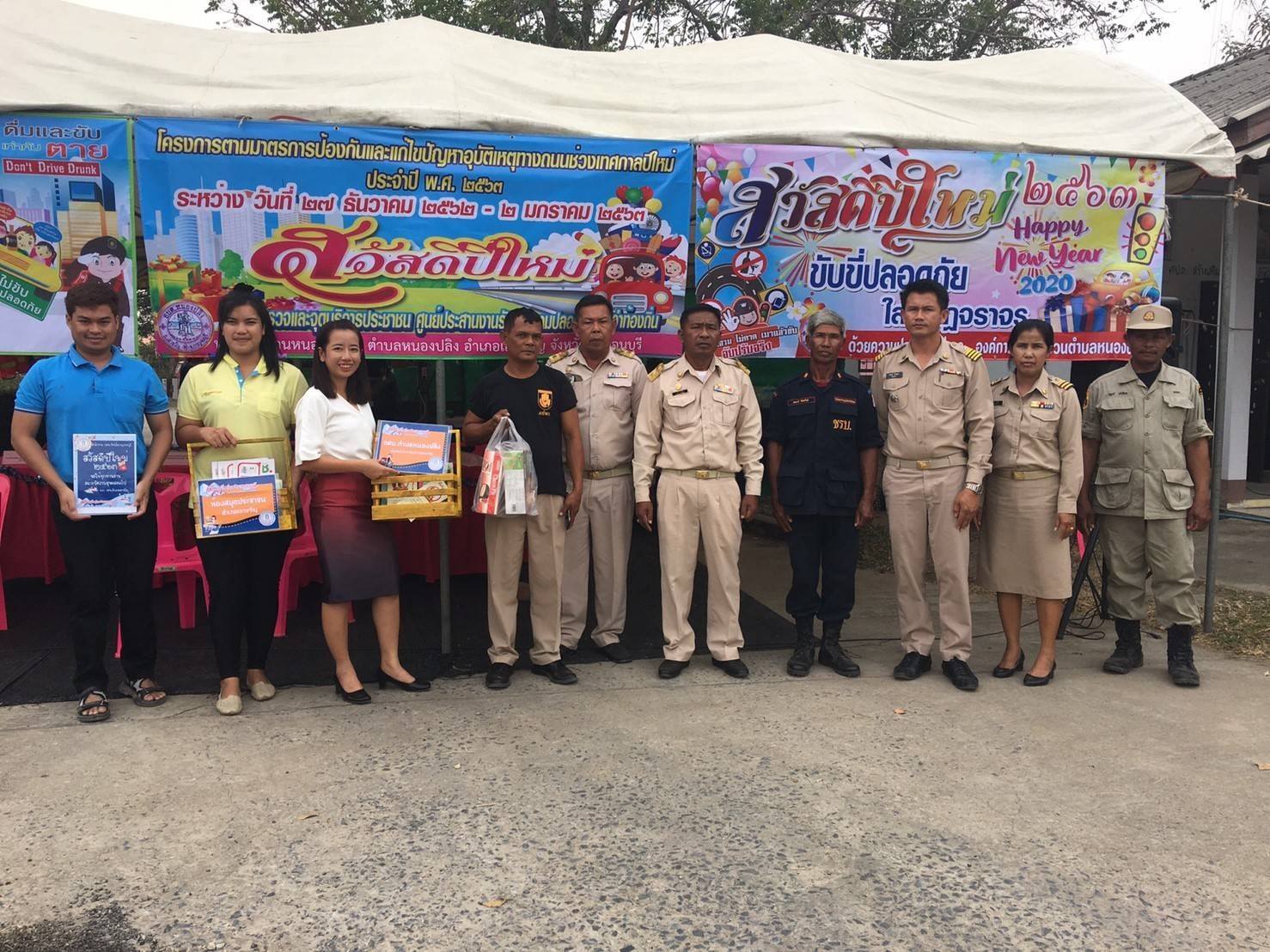 นางสาวภาวิณี กระแสกุล ครูกศน.ตำบล นำกระเช้าหนังสือ และน้ำดื่ม มอบให้จุดตรวจให้บริการประชาชนช่วงเทศกาลปีใหม่