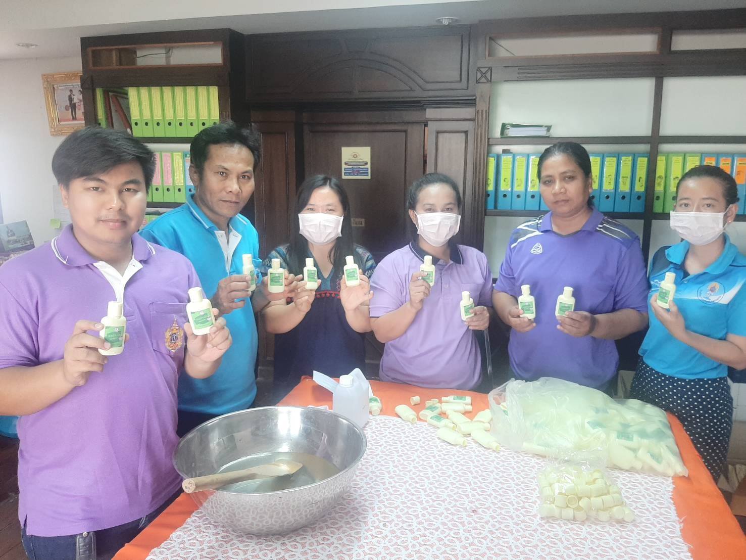 กศน.อำเภอเลาขวัญ จัดทำเจลแอลกอฮอล์ล้างมือ