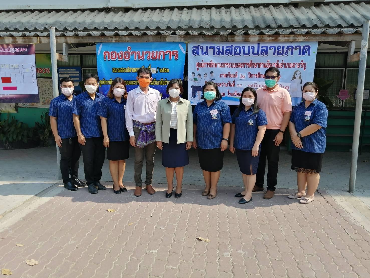 กศน.อำเภอเลาขวัญ สำนักงาน กศน.จังหวัดกาญจนบุรี ดำเนินการสอบปลายภาคเรียนที่ 2 ปีการศึกษา 2562 และได้รับการนิเทศตรวจเยี่ยมสนามสอบจาก นางอรณิช วรรณนุช ผู้อำนวยการ สำนักงาน กศน.จังหวัดกาญจนบุรี และนายบดินทร์ กลีบเมฆ นักวิิชาการศึกษา ให้คำแนะนำในการสอบปลายภาคเรียน เพื่อเพิ่มผลสัมฤทธิ์ทางการเรียน?ให้กับนักศึกษา และติดตามการดำเนินงานตามมาตรการเฝ้าระวัง ป้องกัน ควบคุม และแก้ไขสถานการณ์โรคติดเชื้อไวรัสโคโรนา 2019 ( COVID-19 ) ในการสอบปลายภาคเรียนในครั้งนี้ โดยได้รับความอนุเคราะห์เจ้าหน้าที่โรงพยาบาลเลาขวัญ มาตรวจคัดกรองก่อนเข้าห้องสอบ ณ สนามสอบโรงเรียนเลาขวัญราษฎร์บำรุง อำเภอเลาขวัญ จังหวัดกาญจนบุรี