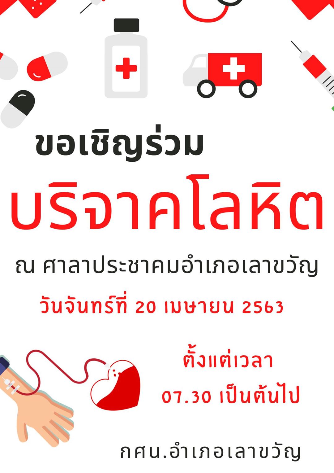 วันที่ 20 เมษายน 2563 อย่าลืมมาบริจาคโลหิตกันนะคะ