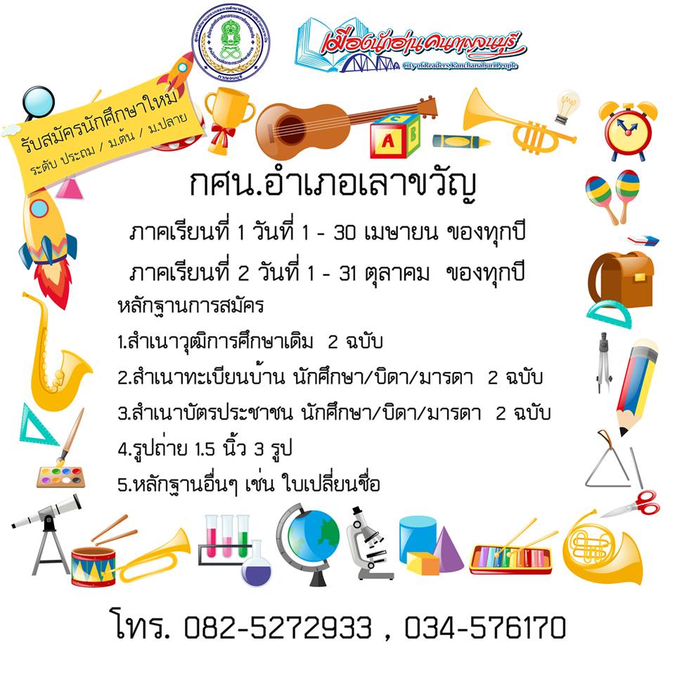 กศน.อำเภอเลาขวัญ เปิดรับสมัครนักศึกษาใหม่ ภาคเรียนที่ 1 ปีการศึกษา 2562 ตั้งแต่บัดนี้จนถึงสิ้นเดือนเมษายน 2562