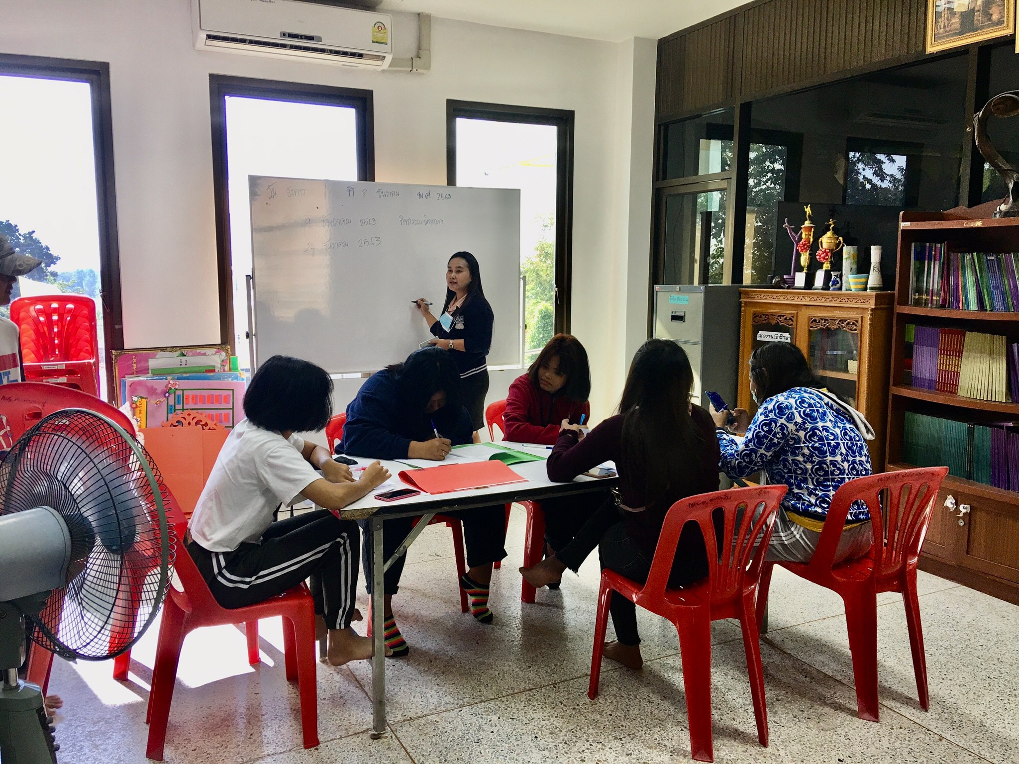 นางสาวมาลี เกิดมงคล ครู กศน. ตำบลหนองฝ้าย สำรวจหนังสือเรียน ประจำภาคเรียน ที่ 2/2563 และจัดกิจกรรมการเรียนการสอน