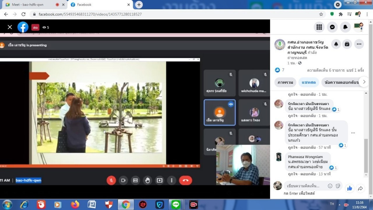 วันที่ 13 สิงหาคม 2564 นางศรัณย์พัทธ์ เพ็ญปัญญา ผู้อำนวยการ กศน.อำเภอเลาขวัญ มอบหมายให้นางสาวกันยา ทองนิล ครู กศน.ตำบล ปฎิบัติหน้าที่ ศรช.บ้านใหม่เขาวัง จัดกิจกรรมพัฒนาผู้เรียน โครงการส่งเสริมการเรียนรู้ปรัชญาของเศรษฐกิจพอเพียง รูปแบบโคก หนอง นา โมเดล เพื่อให้นักศึกษาที่เข้าร่วมโครงการ มีความรู้ความเข้าใจในเรื่องปรัชญาของเศรษฐกิจพอเพียง ตามรูปแบบโคก หนอง นา โมเดล และสามารถนำไปปรับใช้ในชีวิตประจำวันได้ ในรูปแบบออนไลน์ Google Meet และ LIVE ผ่านเพจ Facebookของกศน.อำเภอเลาขวัญ โดยมีนางศรัณย์พัทธ์ เพ็ญปัญญา ผู้อำนวยการ กศน.อำเภอเลาขวัญ เป็นประธานในพิธีเปิด และขอขอบคุณนายชูศักดิ์ ชิวปรีชา วิทยากรครูจากโรงเรียนเลาขวัญราษฎร์บำรุง ณ กศน.อำเภอเลาขวัญ จังหวัดกาญจนบุรี