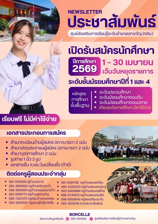 สกร.ระดับอำเภอเลาขวัญ (เดิม กศน.) เปิดรับสมัครนักศึกษา