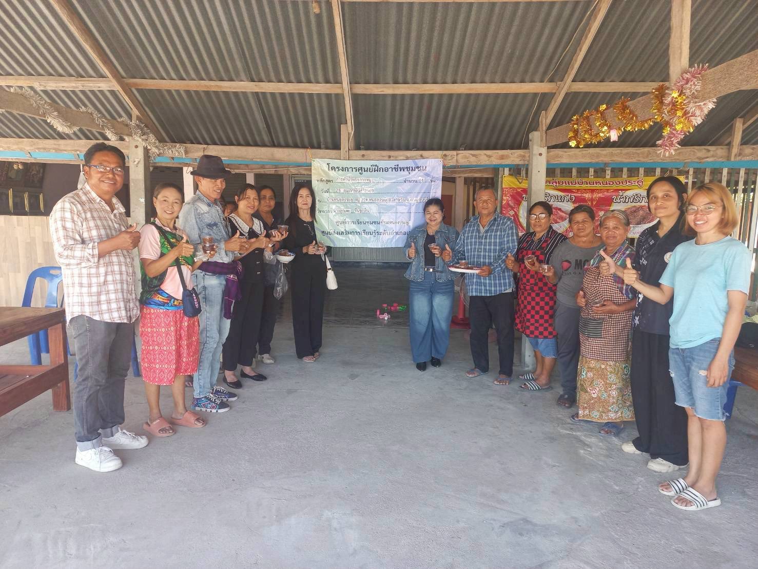 วันที่ 28 เดือน กุมภาพันธ์ พ.ศ. 2569 นางศรัณย์พัทธ์ เพ็ญปัญญา ผู้อำนวยการ สกร.ระดับอำเภอเลาขวัญ มอบหมายให้นางสาวนิลเนตร ภูมิลำเนาว์ ครูศูนย์การเรียนรู้ จัดกิจกรรมศูนย์ฝึกอาชีพชุมชน หลักสูตรจำนวน 6 ชั่วโมง วิชาการทำน้ำพริกกากหมู โดยมีนางลูกเตย ชื่นชูกลิ่น เป็นวิทยากรให้ความรู้ นิเทศกิจกรรมโดย นางศรัณย์พัทธ์ เพ็ญปัญญา ผู้อำนวยการ สกร.ระดับอำเภอเลาขวัญ นายสมศักดิ์ สุกุลธนาศร กรรมการส่งเสริมและพัฒนาการจัดการเรียนรู้ของสถานศึกษา นางสาวขนิษฐา เล็กเจริญศรี ครูศูนย์การเรียนรู้และนายสมยศ โพธิ์พรหม ผู้ใหญ่บ้าน หมู่ที่ 2 ณ บ้านเลขที่ 70 บ้านหนองประดู่ หมู่ที่ 2 ตำบลหนองประดู่ อำเภอเลาขวัญ จังหวัดกาญจนบุรี